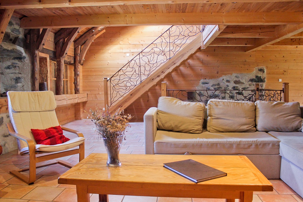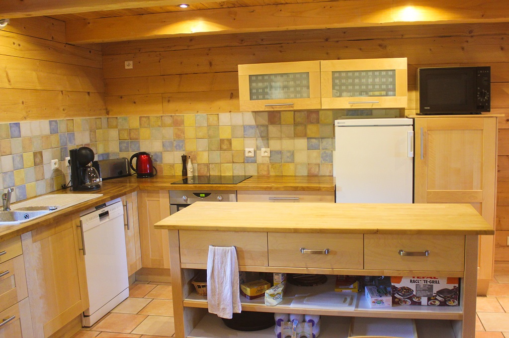 • 1er étage : grand séjour avec télé, poêle à bois, canapé / fauteuils. Cuisine avec micro ondes, four, lave vaisselle, appareille raclette…